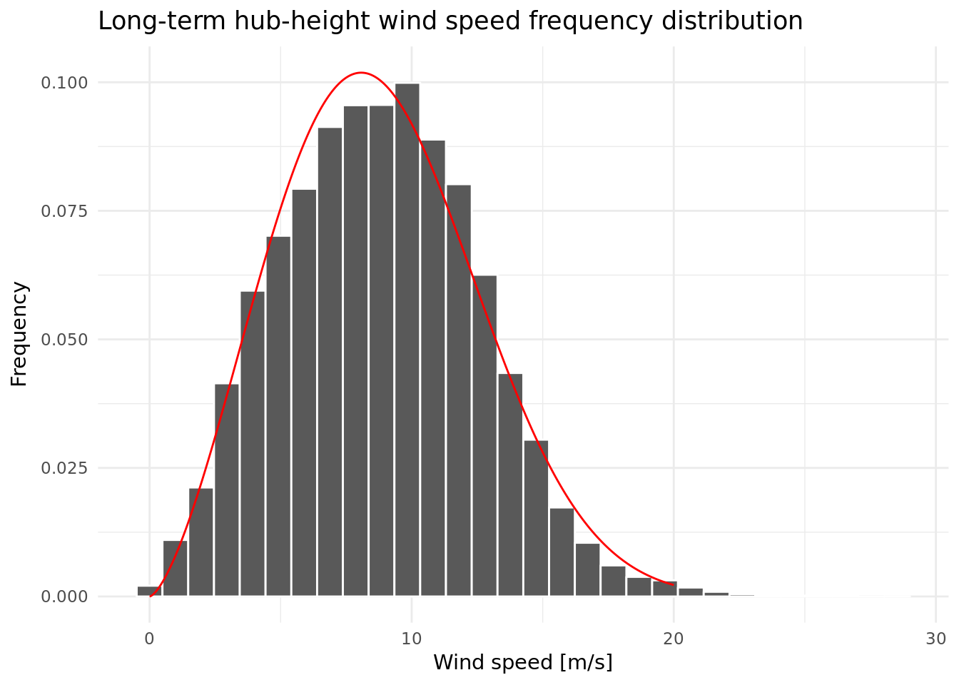 labs(title='Long-term hub-height wind speed frequency distribution',